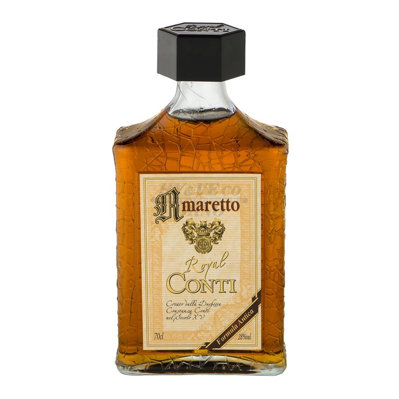 Amaretto Royal Conti 0,7l 28% - je kvalitní španělský líker z mandlí. Vhodný k velké řadě koktejlů, ale i k přímé konzumaci.