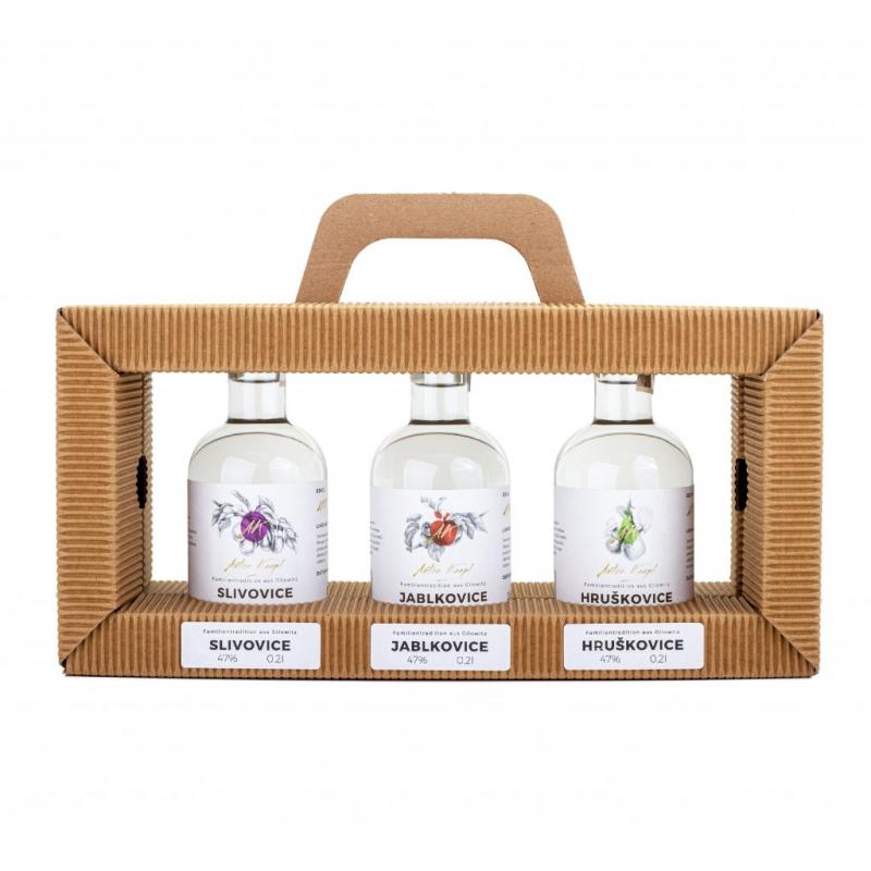 Při ručním skládání rámečku je do něj vložena lahev s naším destilátem.