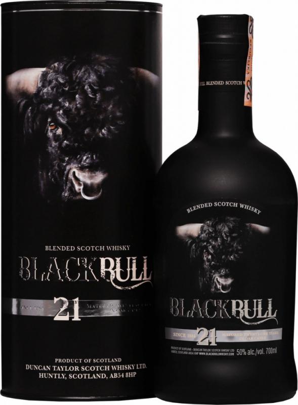 Black Bull 21yo je mimořádným blendem velmi starých a vzácných whisky. Ve finálním blendu zastoupen ještě výraznější podíl vybraných single malt whisky (75% single malt/25% single grain/50% alc.vol.). Ke zdůraznění unikátní jemnosti pomáhá i zde vyšší zastoupení sudů po sherry použitých při finálním staření. Vyšlechtěno k dokonalosti - výroba takto starých whisky probíhá logicky opravdu v malých dávkách – výsledkem je krásně vybalancovaná, komplexní whisky s neobvykle širokou škálou příchutí a tónů. Zachutnala i řadě znalců na řadě prestižních mezinárodních soutěží a expertních panelů. Nyní je připravena i pro vás v reprezentativní a elegantní černé dárkové tuběbohatá paleta hraje tóny citrusu, červených jablek, mandarinek, s náznakem karamelu velmi živá a osvěžující s pikantními tóny a excelentní rovnováhou – stopy muškátového oříšku a hřebíčku doplňuje sladkost vanilky a rozvíjejícího se nádechu cukru