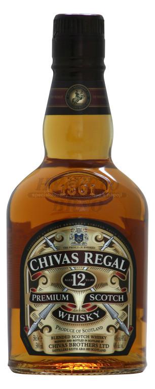 Chivas Regal 0,5 l. Srdcem této dvanáctileté prémiové whisky jsou vyzrálé, lahodné single malts harmonicky sladěné s nejkvalitnějšími grain z celého Skotska. Společnost Chivas Brothers disponuje největší zásobou zrajících whisky, z nichž čerpá pro dosažení stále stejně jemné, plné, lehce ovocné chuti Chivas Regal. Pije se nejen čistá, ale je take bází luxusních variant klasických koktejlů postavených na whisky.