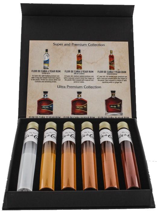 Flor de Caňa 18yo rum, ktorý zreje v dubových sudoch po whisky a bourbone. Ucítite v ňom tóny vanilky, karamelu, hrozienok a pečených orechov, chuť hnedého korenia, karamelu, tmavej čokolády a pečených orieškov. Flor de Caňa 25yo je noblesný prémiový rum, ktorý ponúka fenomenál a plnú chuť, oplývajúcu slastnou trstinovou príchuťou s jemnou stopou dubového dreva, vanilky a luxusnej horkej čokolády.