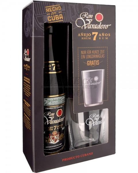 Varadero Anejo Rum 7yo 0,7l 38% Dárkové balení + sklenička - Velkou přidanou hodnotou tohoto rumu je, že je do lahví stáčen přímo na KUBĚ a ne jako většina rumů v Evropě. Během důkladného sedm let trvajícího staření v sudech z Amerického dubu , získává tento rum typickou jantarovou barvu a silný buket nejlepších Kubánských rumů. Stařením získává chuť jemně nasládlou s mírně přetrvávající hořkostí. Ideální je tento rum pít čistý. Perfektně chutná s černou kávou a doutníkem.
