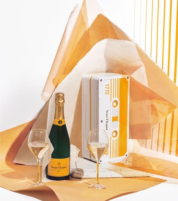Limitovaná edice Veuve Clicquot Ponsardin Brut v dárkovém balení ve tvaru kazety. |