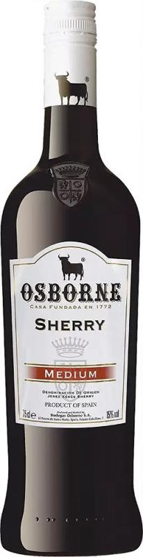 Silné španělské víno Osborne Sherry Medium je cuvée vyrobené z odrůd Palomino Fino a Pedro Ximénez.