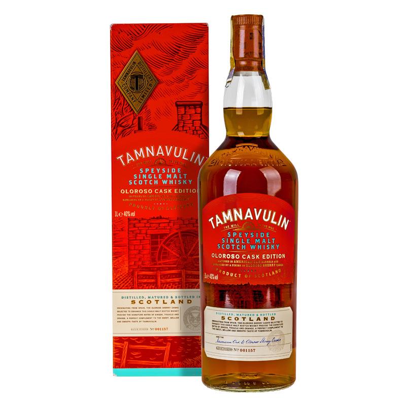 Tamnavulin Oloroso Cask je jednosladová whisky ze Speyside, která nejprve zrála v sudech z amerického dubu a poté byla zušlechtěna ve speciálních sudech po sherry Oloroso. Je dokonalým doplňkem sladké, jemné a měkké chuti Tamnavulinu. Palírna Tamnavulin byla otevřena v roce 1966 na břehu řeky Livet, hluboko v srdci Speyside, nejslavnější skotské oblasti s whisky.