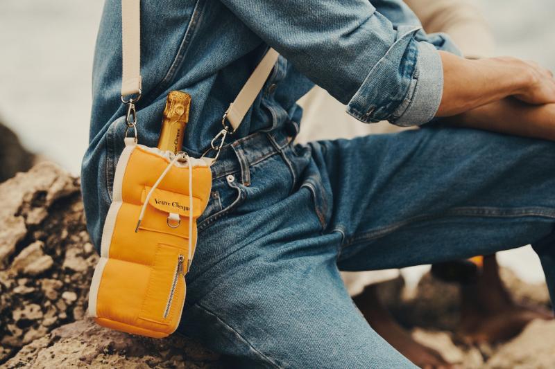 Šampaňský dům Veuve Clicquot přichází s trendy módním doplňkem pro slunečné výlety - taškou na láhve, která je něžně nadýchaná jako obláček. Tato stylová taška je ideální pro přenášení a uchovávání šampaňského při optimální teplotě až jednu hodinu. Díky dvěma kapsám a funkčnímu ramennímu popruhu je ideální na cesty za dobrodružstvím. Navíc je navržena podle nejnovějších trendů a vyrobena z recyklovaných materiálů.