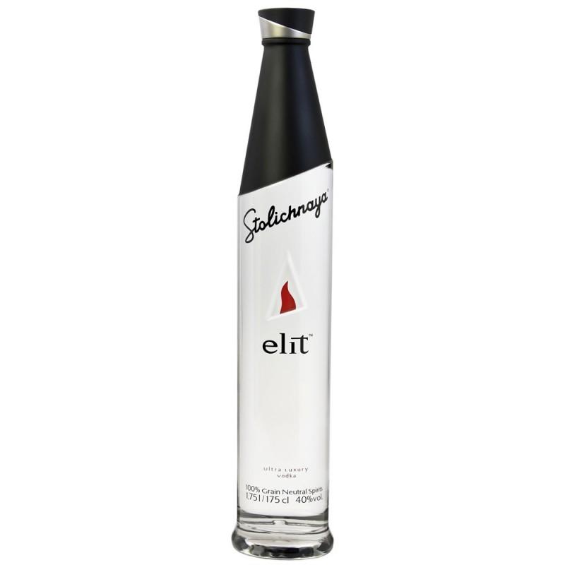 Ultra prémiová, lotyšská vodka Elit v lahvi 1,75 litru. Jedná se o dokonale jemnou vodku, to nejlepší co kdy bylo vyrobeno společností Stolichnaya. Tajemství její chuti a stylu spočívá v použití té nejkvalitnější ozimé pšenice, křištálově čisté vody a čtyřnásobné destilace, která je zakončena čtyřfázovou filtrací přes aktivní uhlí, drcení křemen a tkaninový filtr.