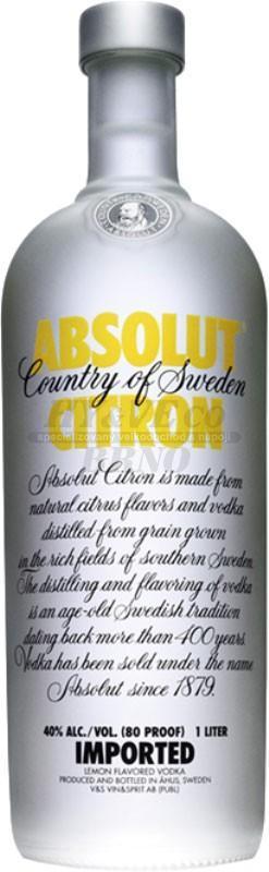 Absolut Citron byla představena na trhu v roce 1988. Je kombinací vůně a chuti Absolut vodky s citrusovým patrem, v němž dominuje citron |