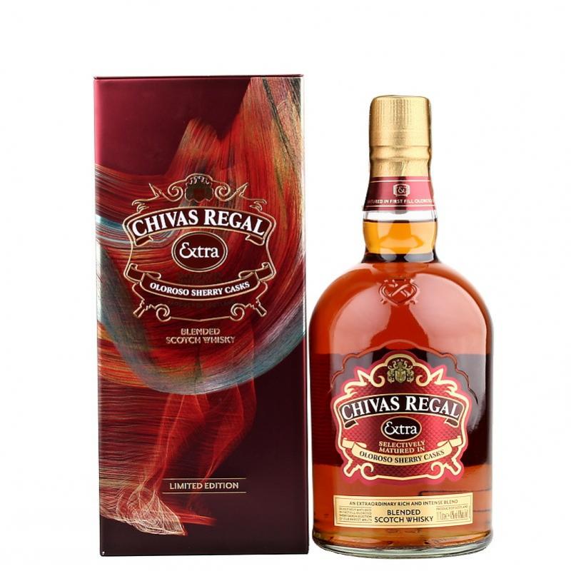 Skotská whisky Chivas Regal Extra Blended 40% je dalším velkým úspěchem pro bratry Chivas. Tato Chivas Regal je výjimečná směsice vzácných whisky, které zrály ve sherry sudech ze Španělska. Výsledkem je aromatická, ovocná whisky s velkorysou sladkostí.